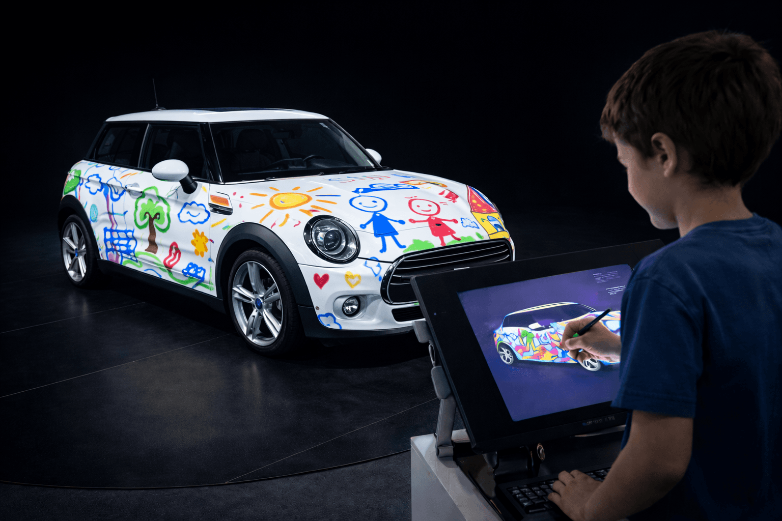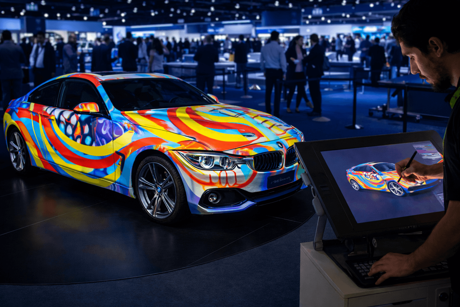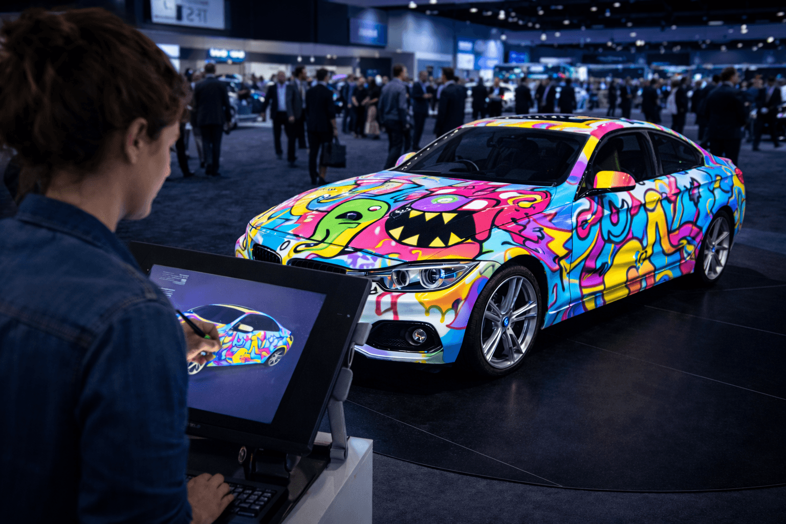 Intervenciones visuales en vivo mediante dibujo y animación proyectada sobre superficies, permitiendo personalización y creación en tiempo real durante el evento.